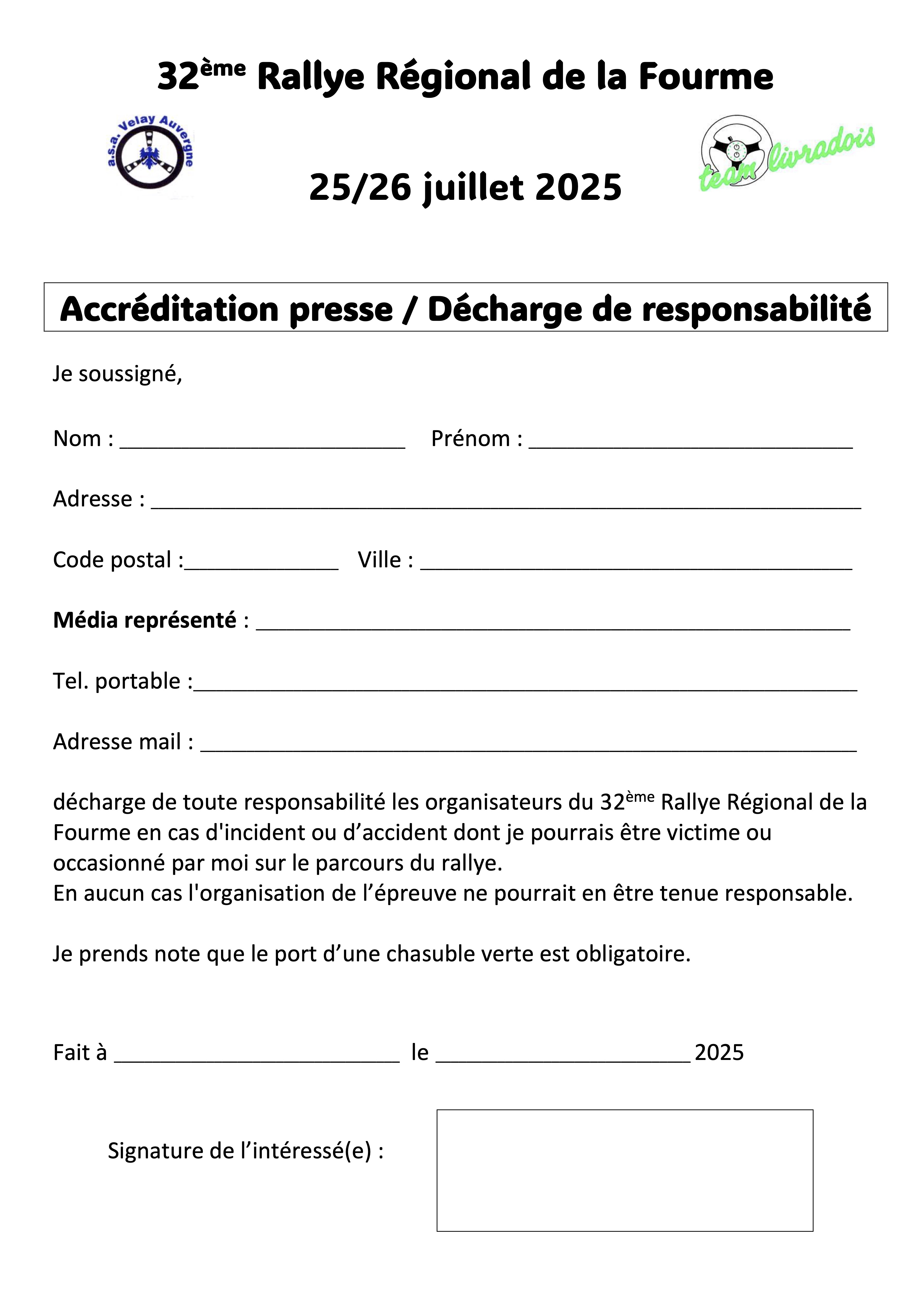 Vous trouverez ci-dessous les documents relatifs à l’engagement au 32ème Rallye Régional de la fourme :